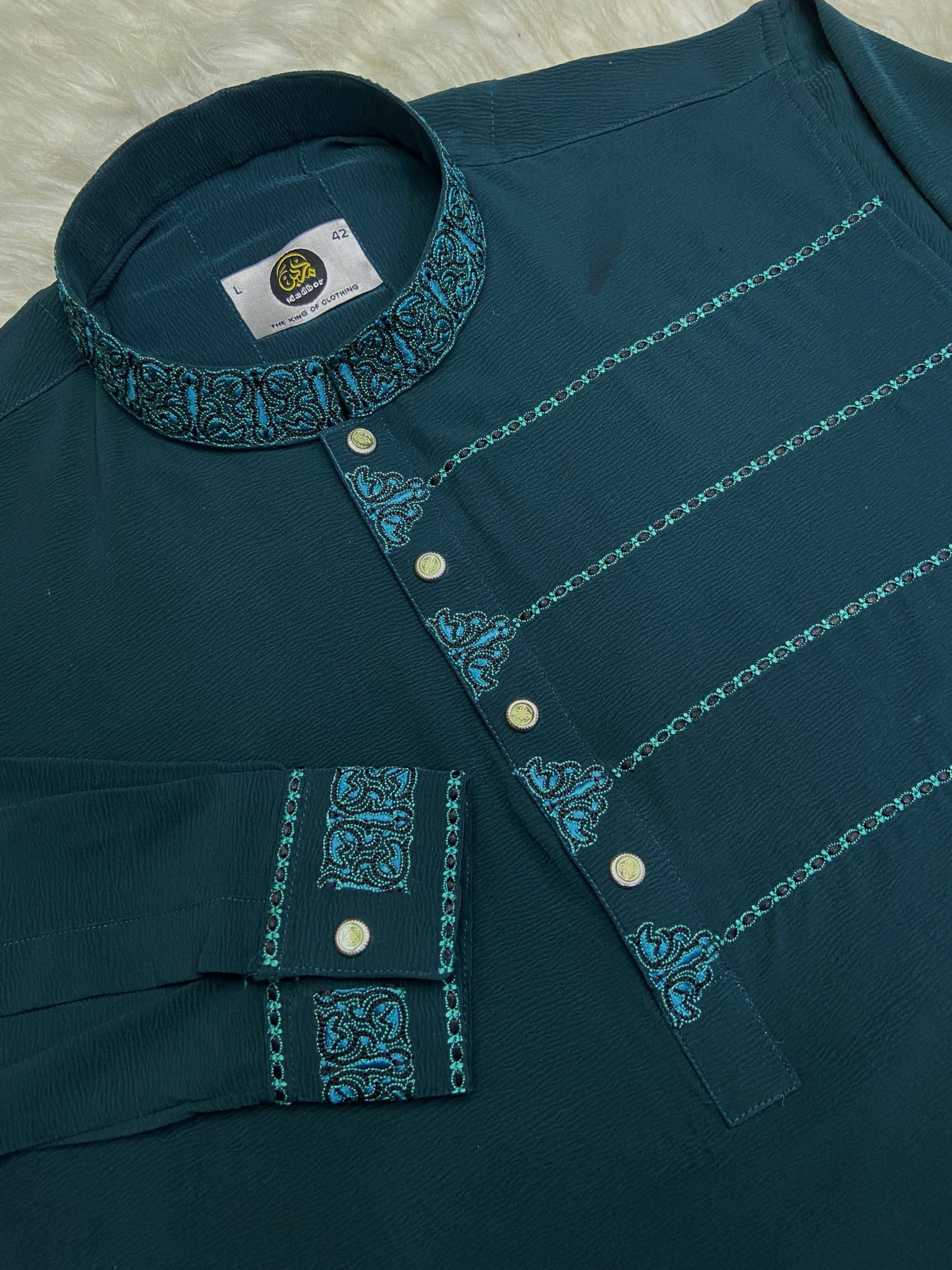 ✅পেট্রোল ব্লু লাক্সারি জাফরান পাঞ্জাবি – কোড: ML-200