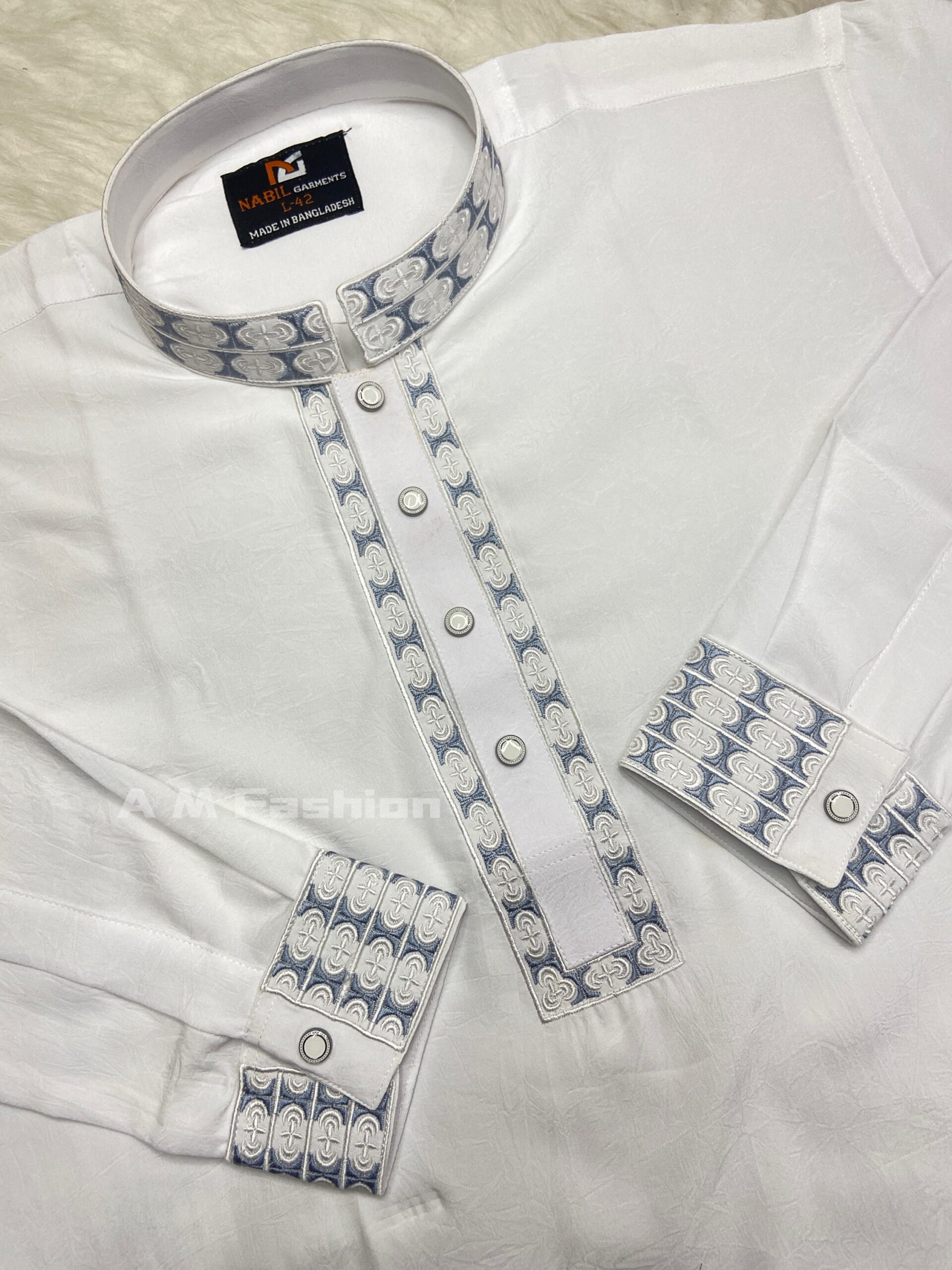 ✅সাদা ভাঙ্গচুর স্টিজ পাঞ্জাবি – কোড: NB-404