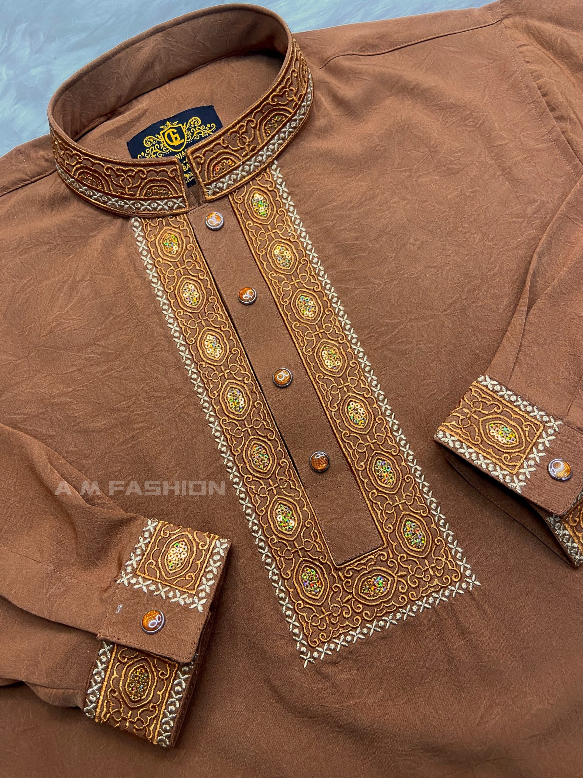 ✅চকলেট ব্রাউন ভাঙ্গচুর স্টিজ পাঞ্জাবি – কোড: LM-310