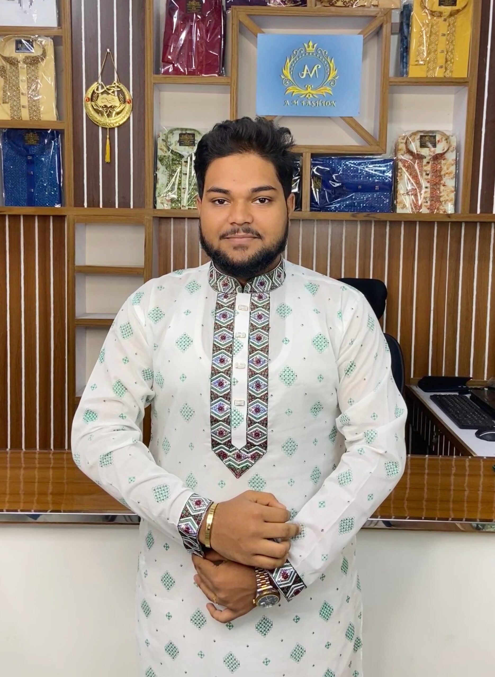 ✅ কাপড়ের মান: প্রিমিয়াম ধুতি কাপড়, সিকোয়েন্স এম্বটারি কাজ করা।