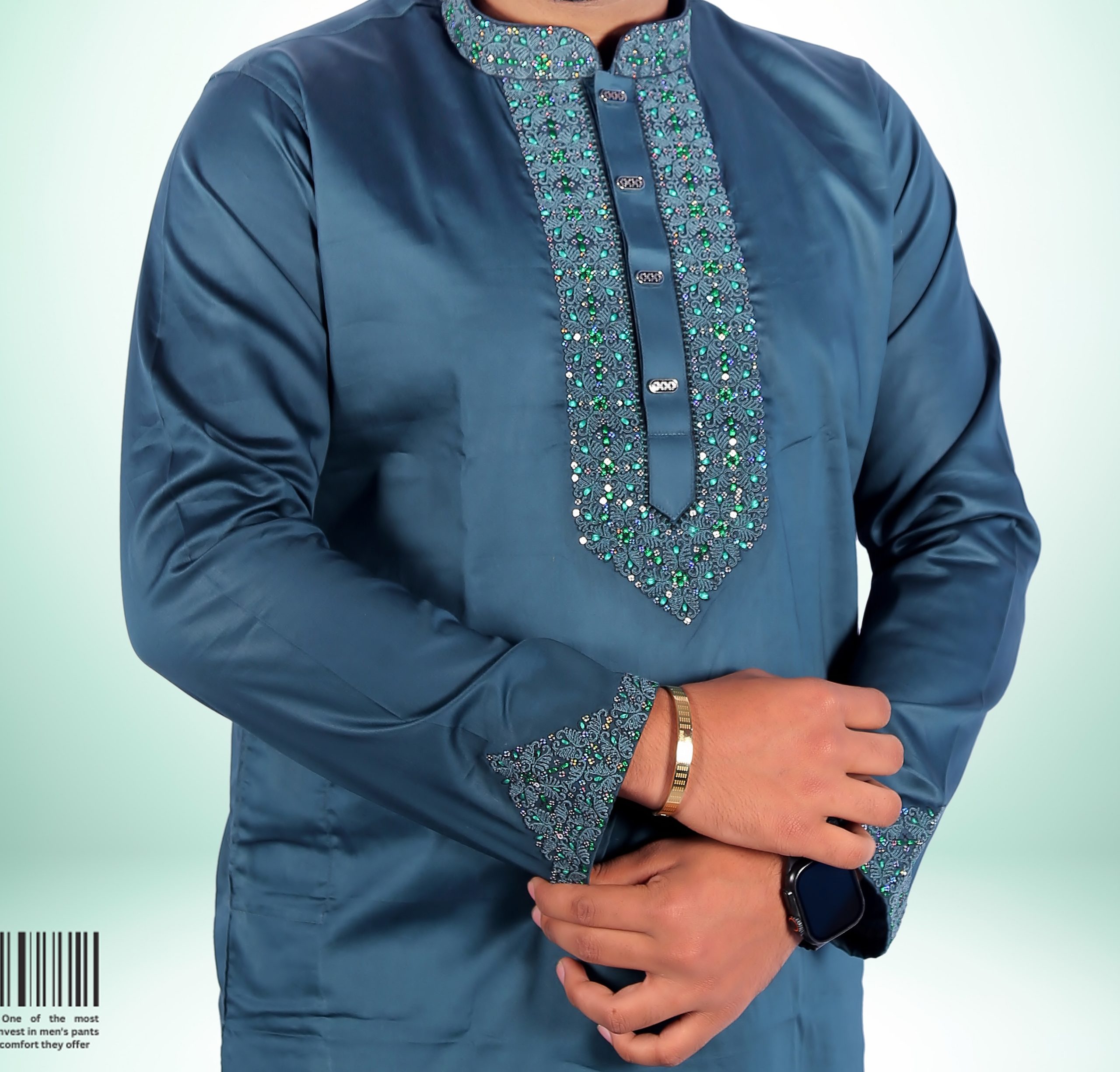 পেট্রোল ব্লু কালার সিকোয়েন্স পাঞ্জাবি – কোড: MG-501