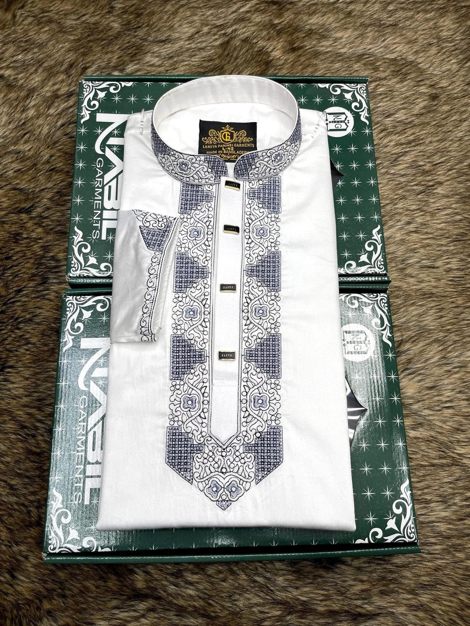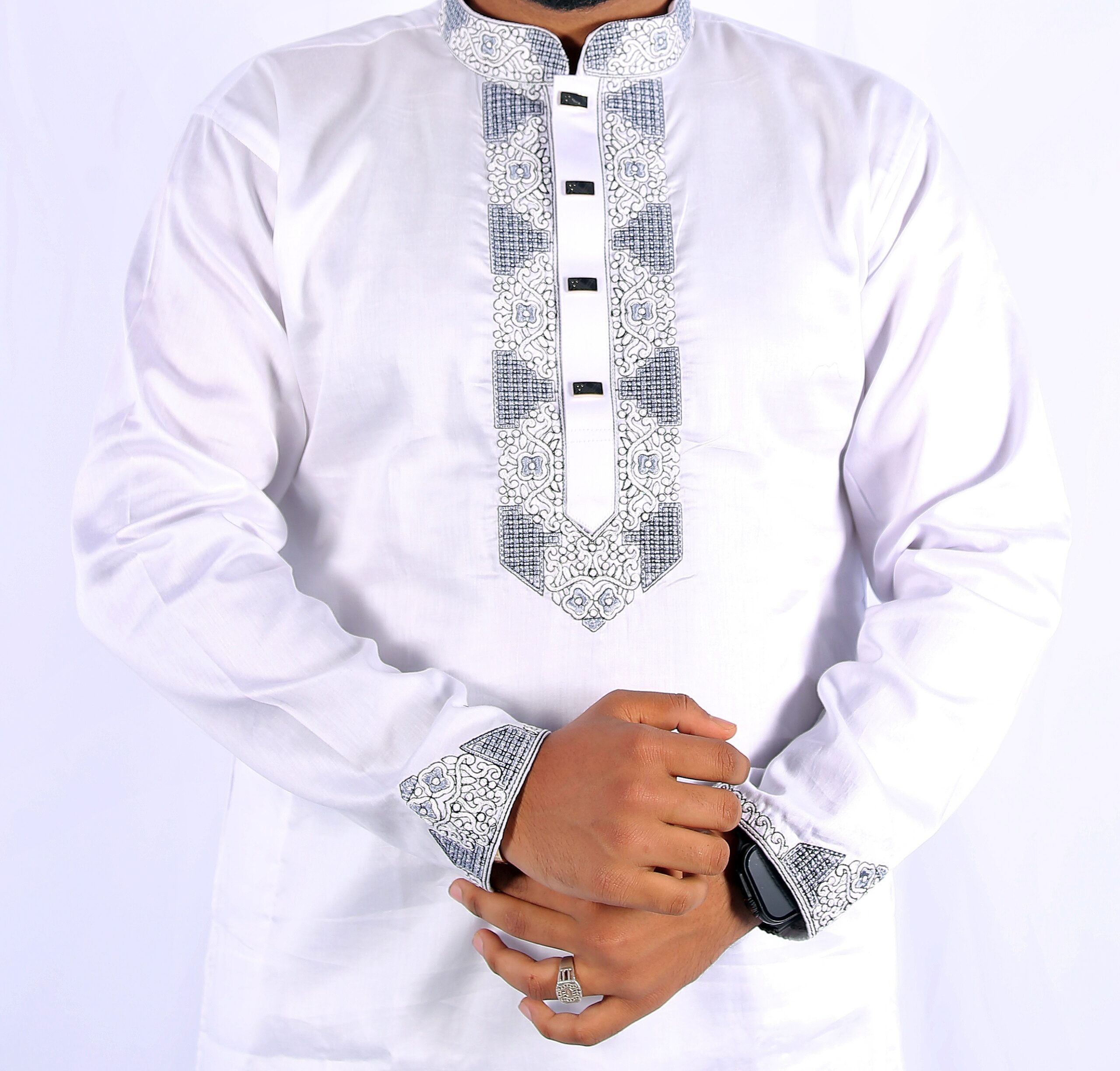 সাদা কালার কট এমব্রয়ডারি পাঞ্জাবি – কোড: LM-205