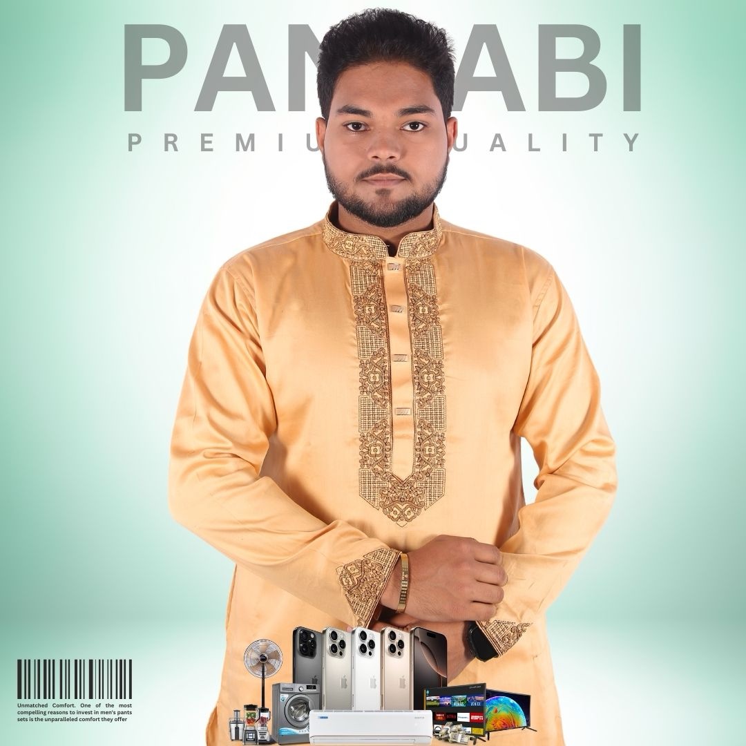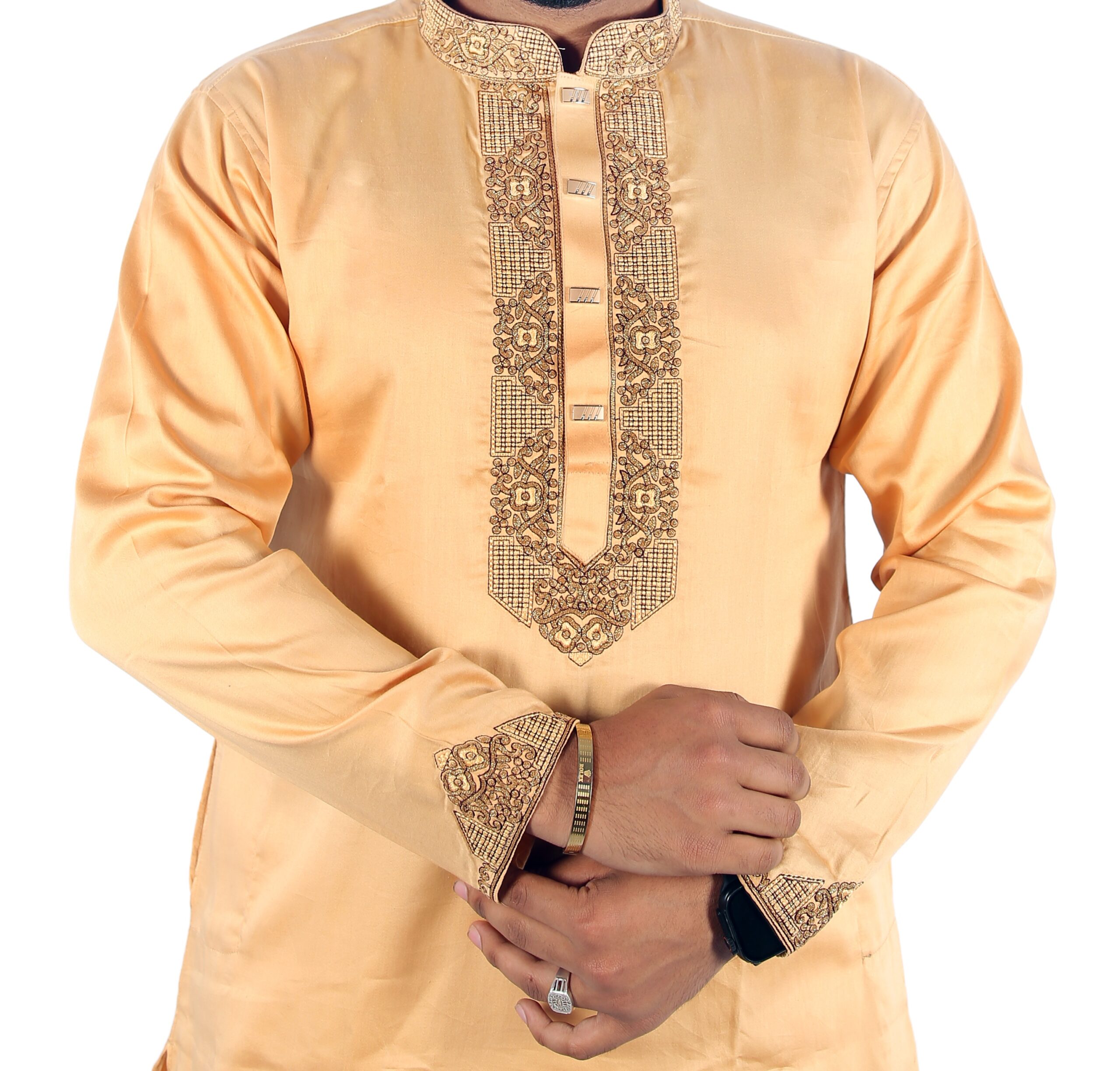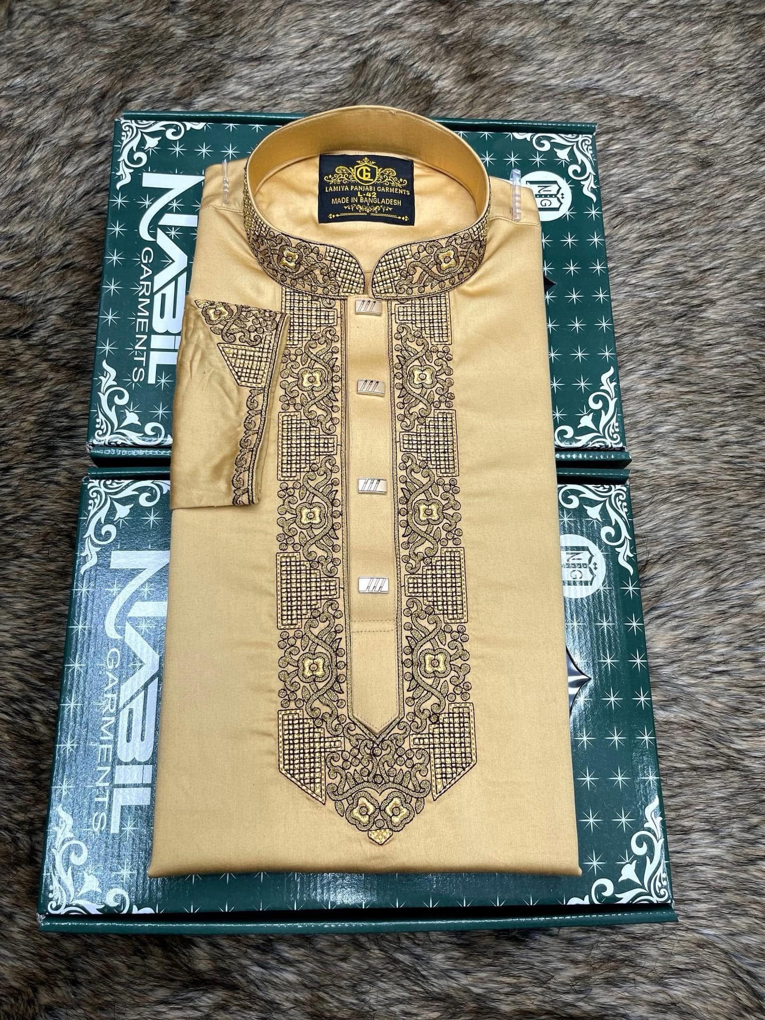 গোল্ডেন কালার কট এমব্রয়ডারি পাঞ্জাবি – কোড: LM-203