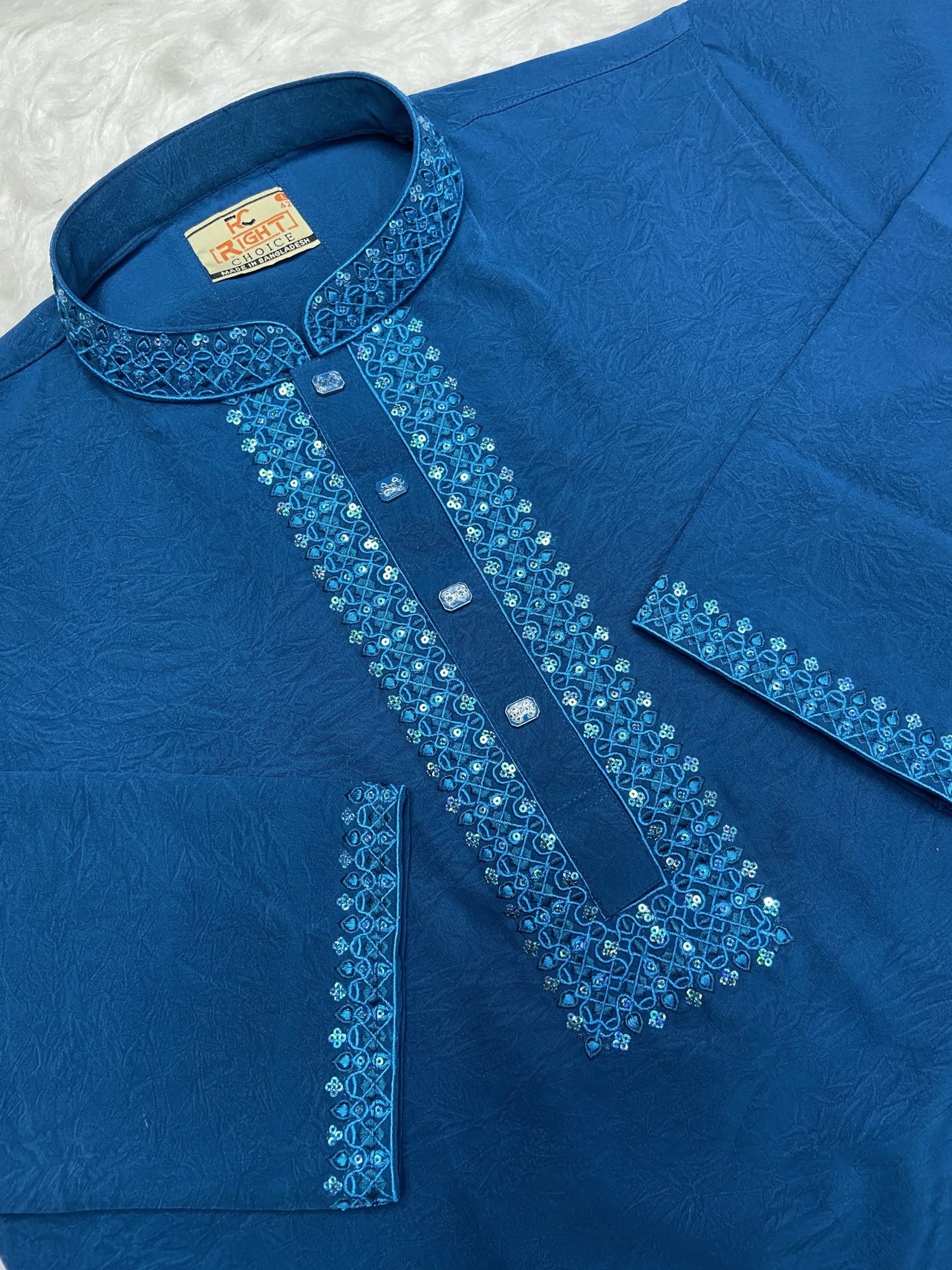 Exclusive stitch Panjabi Prussian Blue- CODE: MS-103