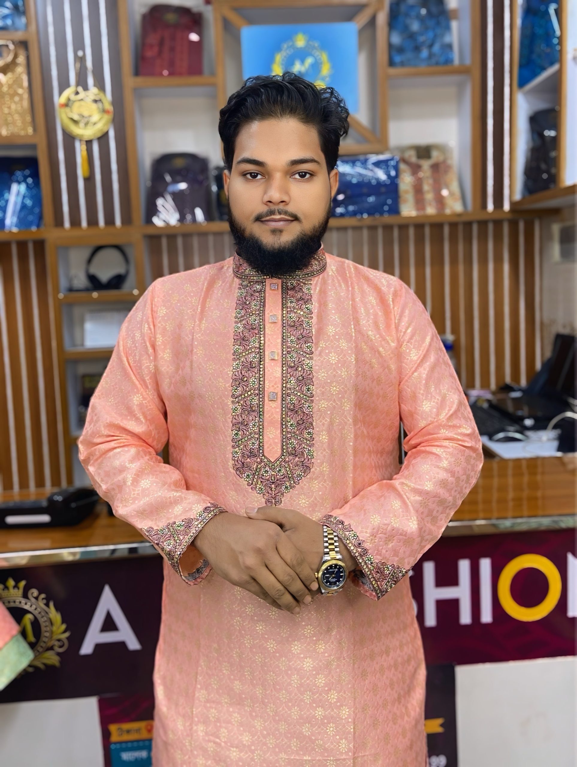 গোলাপি কালার প্রিন্ট এমব্রয়ডারি পাঞ্জাবি – কোড: LM-903